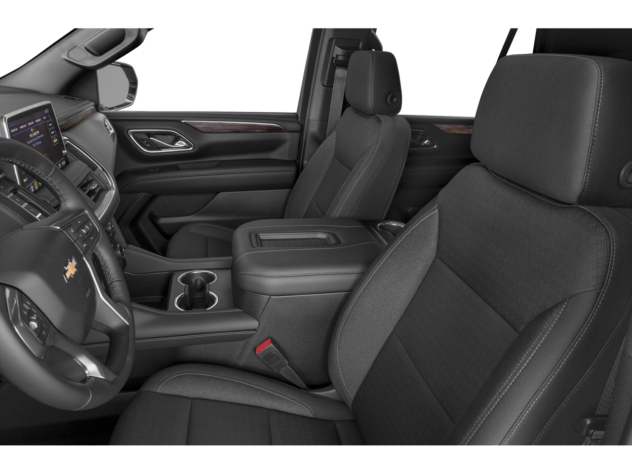 Driver Alert Package (Front & Rear Park Assist, Lane Change Alert w/Side Blind Zone Alert, Lane Keep Assist w/Lane Departure Warning, and Rear Cross Traffic Alert), License Plate Front Mounting Package, Preferred Equipment Group 1LS (1st & 2nd Row Color-Keyed Carpeted Floor Mats, 2 USB Data Ports, Color-Keyed Carpeting Floor Covering, Driver & Front Outboard Passenger Airbags, Floor Console w/Storage Area, HD Radio, Infotainment Display, Leather-Wrapped Steering Wheel, LED Daytime Running Lamps, Remote Start, and SiriusXM Radio w/360L), 4WD, Jet Black Cloth, 3.23 Rear Axle Ratio, 3rd row seats: split-bench, 4-Wheel Disc Brakes, 6 Speakers, 6-Speaker Audio System Feature, ABS brakes, Air Conditioning, Alloy wheels, AM/FM radio: SiriusXM with 360L, Apple CarPlay/Android Auto, Auto High-beam Headlights, Automatic temperature control, Brake assist, Bumpers: body-color, Compass, Delay-off headlights, Driver door bin, Driver vanity mirror, Dual front impact airbags, Dual front side impact airbags, Electronic Stability Control, Emergency communication system: OnStar and Chevrolet connected services capable, Four wheel independent suspension, Front anti-roll bar, Front Bucket Seats, Front Center Armrest, Front dual zone A/C, Front High-Back Reclining Bucket Seats, Front reading lights, Fully automatic headlights, Heated door mirrors, Illuminated entry, Leather steering wheel, Low tire pressure warning, Occupant sensing airbag, Outside temperature display, Overhead airbag, Overhead console, Panic alarm, Passenger door bin, Passenger vanity mirror, Power door mirrors, Power driver seat, Power passenger seat, Power steering, Power windows, Premium audio system: Chevrolet Infotainment 3, Premium Cloth Seat Trim, Premium Smooth Ride Suspension, Radio: Chevrolet Infotainment 3 Plus System, Rain sensing wipers, Rear air conditioning, Rear anti-roll bar, Rear reading lights, Rear seat center armrest, Rear window defroster, Rear window wiper, Remote keyless entry, Roof rack: rails only, Security system, Speed control, Speed-sensing steering, Split folding rear seat, Spoiler, Steering wheel mounted audio controls, Tachometer, Telescoping steering wheel, Tilt steering wheel, Traction control, Trip computer, Variably intermittent wipers, Voltmeter, and Wheels: 18" x 8.5" Bright Silver Painted Aluminum.