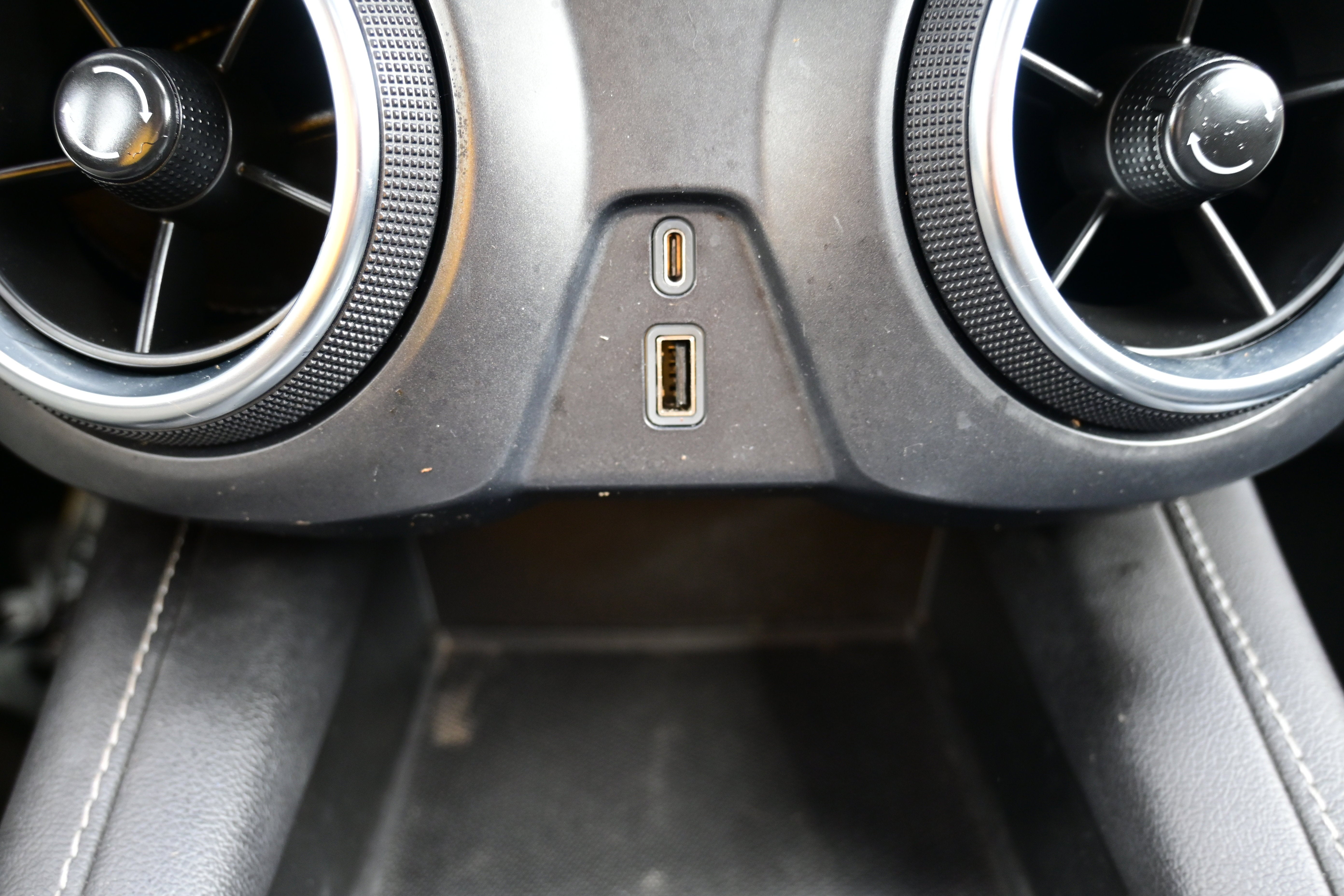 - Dual-outlet exhaust with circular bright tips