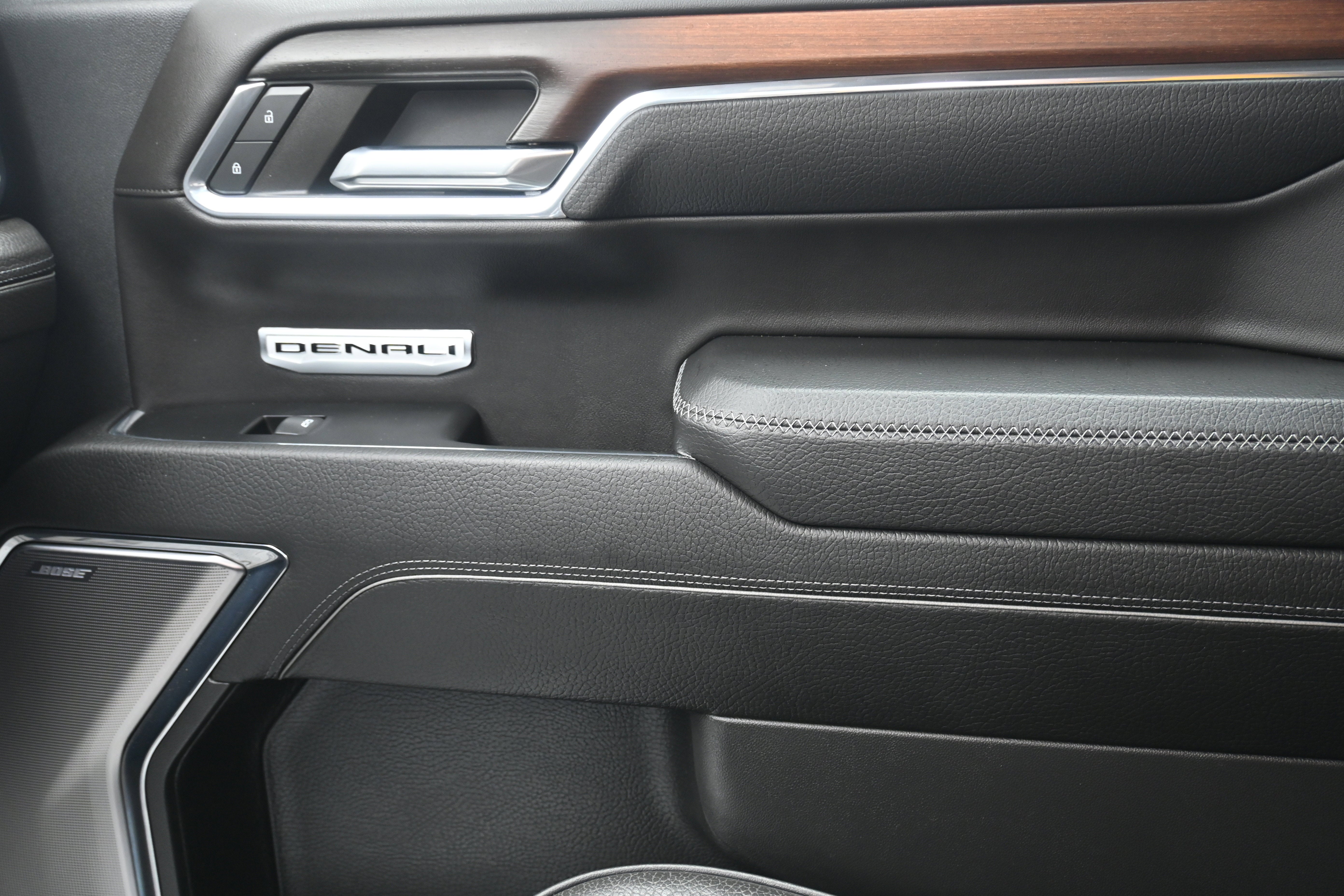 Denali Reserve Package (GMC MultiPro Power Steps, Power Sunroof, Wheel Locks (Set of 4) (LPO), and Wheels: 22" x 9" Painted Aluminum), Preferred Equipment Group 5SA (120-Volt Bed Mounted Power Outlet, 120-Volt Interior Power Outlet, 170 Amp Alternator, 2 Charge/Data USB Ports Inside Center Console, 2 Type-C Charge-Only Rear USB Ports, 2 USB Ports, Auto-Locking Rear Differential, Auxiliary External Transmission Oil Cooler, Bed View Camera, Chrome Header w/Signature Denali Chrome Grille, Chrome Recovery Hooks, Chrome Wheel To Wheel Assist Steps, Color-Keyed Carpeting Floor Covering, Deep-Tinted Glass, Electric Rear-Window Defogger, Floor-Mounted Center Console, Front Rain-Sensing Wipers, GMC Connected Access Capable, HD Surround Vision, Heated 2nd Row Outboard Seats, Heated Driver & Front Outboard Passenger Seating, Heavy-Duty Air Filter, Hill Descent Control, Hitch View, In-Vehicle Trailering System App, Integrated Trailer Brake Controller, Keyless Open & Start, LED Cargo Area Lighting, OnStar & GMC Connected Services Capable, Perimeter Lighting, Power Door Locks, Power Front Passenger Windows w/Express Up/Down, Power Front Windows w/Driver Express Up/Down, Power Rake & Telescoping Steering Column, Power Rear Windows w/Express Down, Power Sliding Rear Window w/Rear Defogger, Premium Bose 7-Speaker Sound System, Push Button Start, Rear Cross Traffic Braking, Rear Pedestrian Detection, Rear Wheelhouse Liners, Remote Vehicle Starter System, SiriusXM w/360L, Spray-On Pickup Bedliner w/Denali Logo, Steering Wheel Audio Controls, Theft Deterrent System (Unauthorized Entry), Trailer Camera Provisions, Trailer Side Blind Zone Alert, Ultrasonic Front & Rear Park Assist, Universal Home Remote, Ventilated Driver & Front Passenger Seats, Wi-Fi Hotspot Capable, and Wireless Charging), Technology Package (Multicolor 15" Diagonal Head-Up Display and Rear Camera Mirror), Trailering Package (Hitch Guidance), 10-Speed Automatic, 4WD, Jet Black Leather, 12-Way Power Driver Seat Adjuster w/Lumbar, 12-Way Power Passenger Seat Adjuster w/Lumbar, 3.23 Rear Axle Ratio, 4-Wheel Disc Brakes, 7 Speakers, ABS brakes, Adaptive suspension, Air Conditioning, Alloy wheels, AM/FM radio: SiriusXM with 360L, Apple CarPlay/Android Auto, Auto High-beam Headlights, Auto-dimming door mirrors, Auto-dimming Rear-View mirror, Automatic temperature control, Brake assist, Buckle to Drive, Bumpers: body-color, Compass, Delay-off headlights, Denali Premium Suspension w/Adaptive Ride Control, Driver door bin, Driver Memory, Driver vanity mirror, Dual front impact airbags, Dual front side impact airbags, Electronic Stability Control, Emergency communication system: OnStar and GMC connected services capable, Enhanced Automatic Emergency Braking, Following Distance Indicator, Forge Perforated Leather Seat Trim, Forward Collision Alert, Front anti-roll bar, Front Bucket Seats, Front Center Armrest, Front dual zone A/C, Front fog lights, Front Pedestrian Braking, Front reading lights, Front wheel independent suspension, Fully automatic headlights, Garage door transmitter, Genuine wood console insert, Genuine wood dashboard insert, Genuine wood door panel insert, Heated door mirrors, Heated front seats, Heated rear seats, Heated steering wheel, Illuminated entry, IntelliBeam Automatic High Beam On/Off, Lane Keep Assist w/Lane Departure Warning, Low tire pressure warning, Memory seat, Navigation System, Occupant sensing airbag, Outside temperature display, Overhead airbag, Overhead console, Panic alarm, Passenger door bin, Passenger vanity mirror, Power door mirrors, Power driver seat, Power passenger seat, Power steering, Power windows, Premium audio system: GMC Infotainment System, Radio data system, Radio: Premium GMC Infotainment Audio System, Rain sensing wipers, Rear reading lights, Rear seat center armrest, Rear step bumper, Rear window defroster,